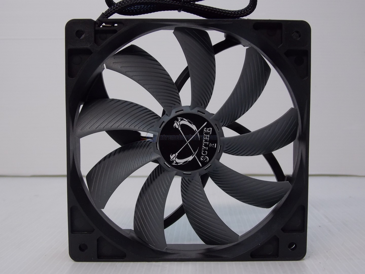 La ventola in dotazione presenta le medesime caratteristiche, potenzialità e problematiche dei modelli presenti nel dissipatore Fuma, se non che in questo caso è presente un selettore di velocità a tre vie, molto utile qualora non si fosse in possesso di un fan controller o di funzionalita di controllo mediante la scheda madre. Presenta quindi un leggerissimo ticking ad RPM inferiori a 950. In termini di performance vale quanto affermato in precedenza, scythe ha svolto un ottimo lavoro di bilanciamento e progettazione aerodimanica del radiatore e delle pale di ventilazione.