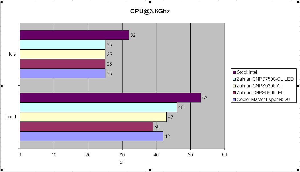 Come si può vedere dalla tabella qui sotto, l’Hyper N520 ha ottenuto ottimi risultati tra i dissipatori confrontati. L’ottima prestazione pero crea un piccolo “neo”: aumento del rumore ad alti regimi delle ventole.