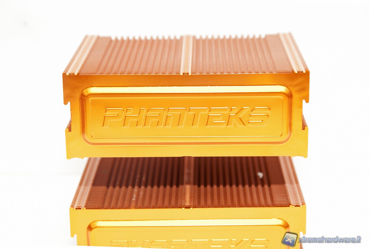A corollario dell’ultima aletta di ciascuno dei due corpi troviamo una placca con la scritta Phanteks stampata in basso rilievo.