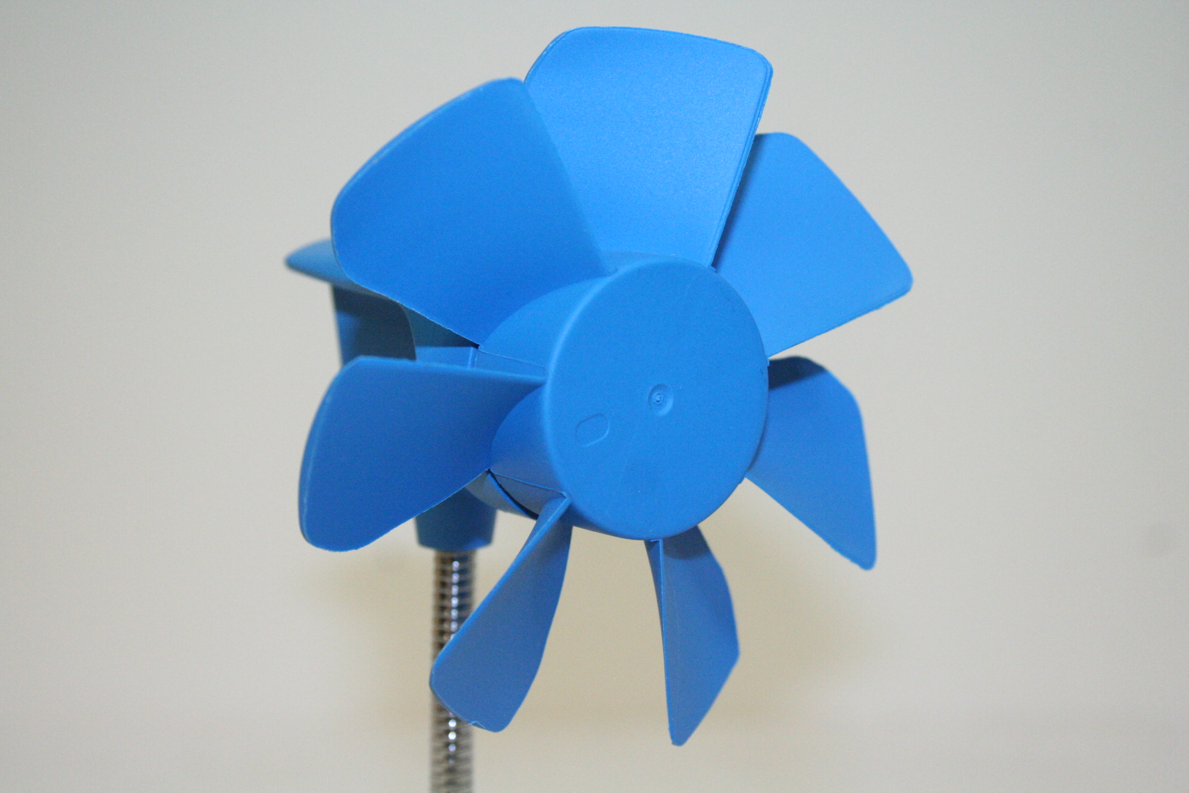 Come si evince dalle fotografie non è presente nessuna protezione alle pale di ventilazione, ma state tranquilli poiché non ci sarà nessun problema per quanto riguarda eventuali incidenti: il motore, appena si inserisce un elemento di resistenza tra le pale, blocca immediatamente il movimento delle stesse. Oltretutto le pale non sono taglienti, non hanno profili appuntiti e sono robuste il giusto da non comportare danni strutturali in caso di contatto con le dita. Si puo’ tranquillamente bloccare la ventola con la mano al massimo della velocità, impugnandola letteralmente; detto ciò, non consigliamo di utilizzarla come elemento di gioco per i nostri amici felini, che sicuramente troverebbero grande giovamento da questo nuovo gingillo sul tavolo di lavoro della propria abitazione. Evitiamo..