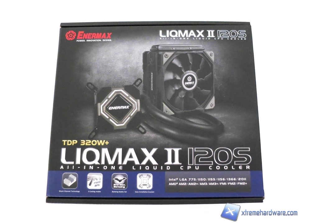 La confezione ed il packaging dell’Enermax Liqmax II 120S è classico. La confezione riporta una grafica curata ed illustra tutte le maggior caratteristiche ed informazioni del prodotto.