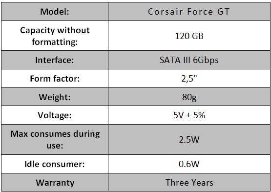 As for GT Force series, Corsair offers three models with different capacities, in particular there is the 60GB, the 120GB version (which we will cover in this review) and the 240GB version. For more information on Force GT models in the series, please consult the official Corsair website: