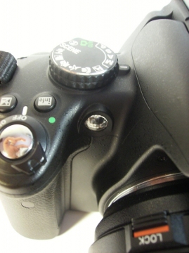 Nella parte anteriore destra notiamo vicino al modello della fotocamera due pulsanti: il primo consentirà di alzare il flash incorporato, il secondo di impostare l’autoscatto, scegliendo fra: 2s, 5s, 10s. Quest’ultimo bottone è inoltre programmabile e noi consigliamo di usarlo per variare la sensibilità iso, in modo che premendo un solo pulsante possiamo variare questo parametro guardando nel mirino, senza distogliere lo sguardo per impostare la sensibilità attraverso il display lcd.