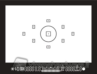 Nella zona inferiore del mirino possiamo trovare informazioni sull’apertura e il tempo di esposizione, sul valore ISO impostato, e altre utili informazioni sul quale non è necessario soffermarsi.