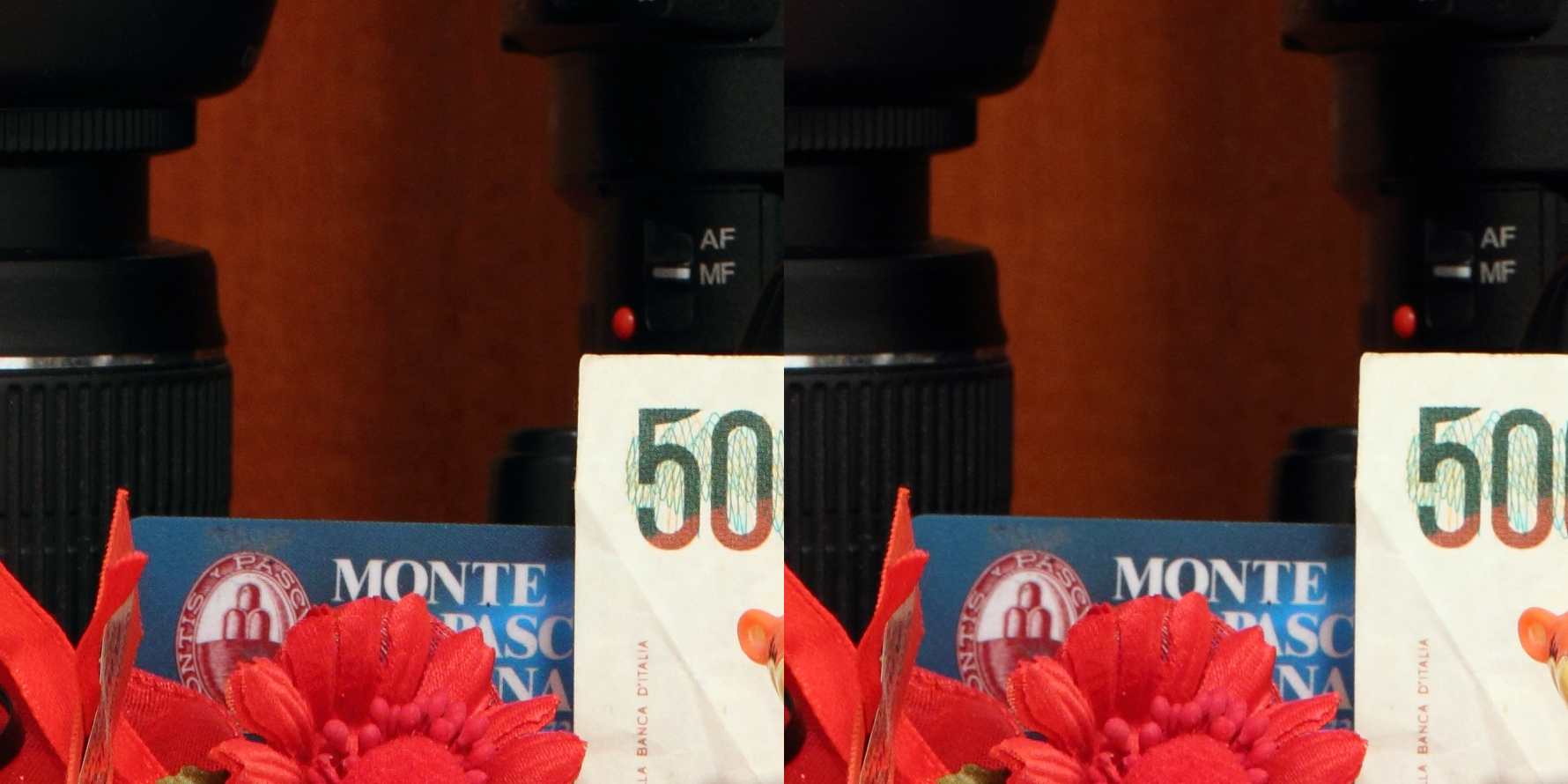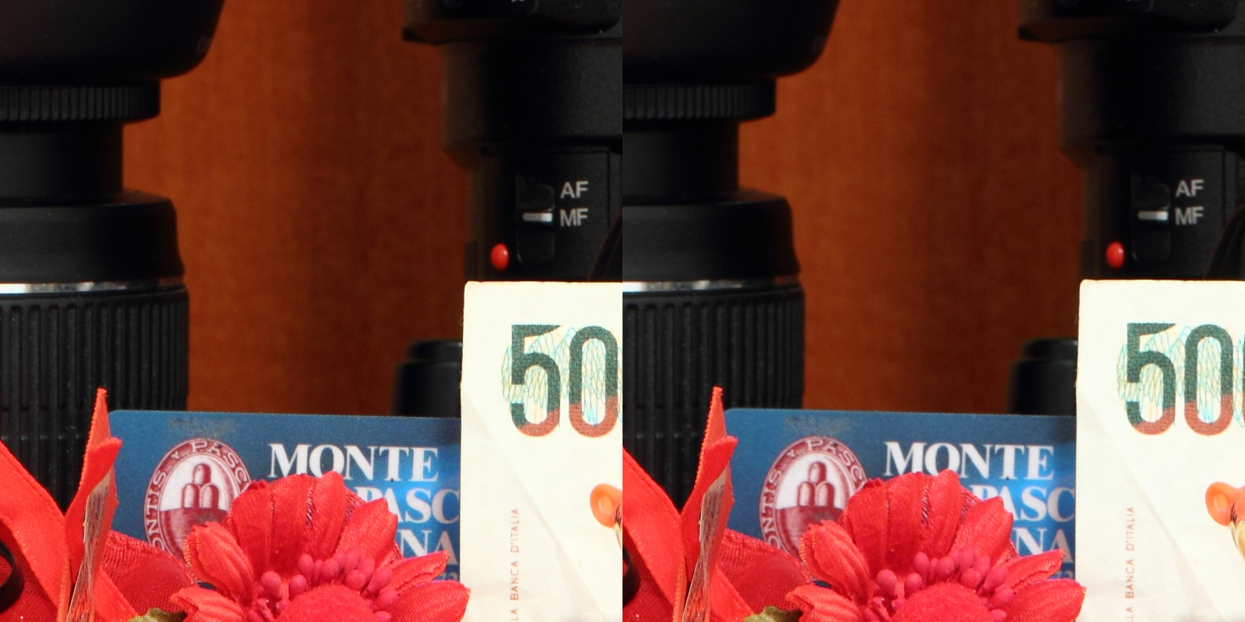 Lo stabilizzatore ottico d’immagine presente su questo prodotto è, secondo Canon, capace di compensare 4 stop. Durante i nostri test è stato in grado di comportarsi egregiamente, ma ne sconsigliamo l’utilizzo al limite delle sue possibilità durante l’utilizzo “sul campo”. I fattori che entrano in gioco in quei momenti non rendono infatti il meccanismo molto affidabile. Come ogni stabilizzatore delle ottiche di Canon di fascia media di ultima generazione, anche questo zoom è in grado di percepire se è stato fissato su un cavalletto , e disattivare di conseguenza lo stabilizzatore ottico. E’ presente anche la rilevazione automatica del panning (in tal caso la stabilizzazione viene implementata sul solo asse verticale). L’immagine sotto rappresenta un confronto tra due scatti effettuati in rapida successione, con le stesse impostazioni, tranne che per la stabilizzazione ottica.