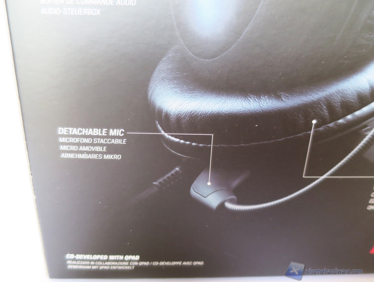 Nel retro della confezione troviamo su sfondo nero un’immagine illustrativa del prodotto con vari punti che ci spiegano le caratteristiche principali di questo headset.