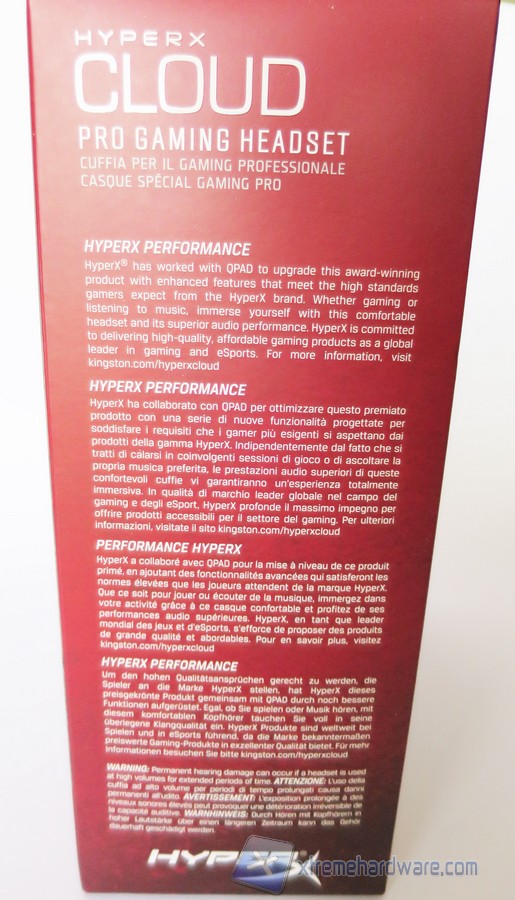 La confezione è come sempre ricca di informazioni e curata sin nei minimi dettagli. Con le HyperX Cloud troviamo ovviamente una grafica rinnovata. Nella parte frontale trovano posto un’immagine illustrativa del prodotto, il modello, il brand e ci viene ricordato che la garanzia è di 2 anni con supporto gratuito in caso di problemi.