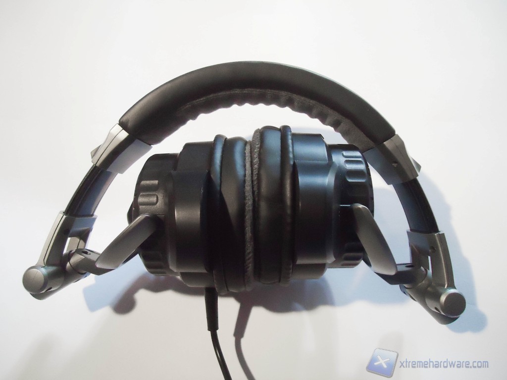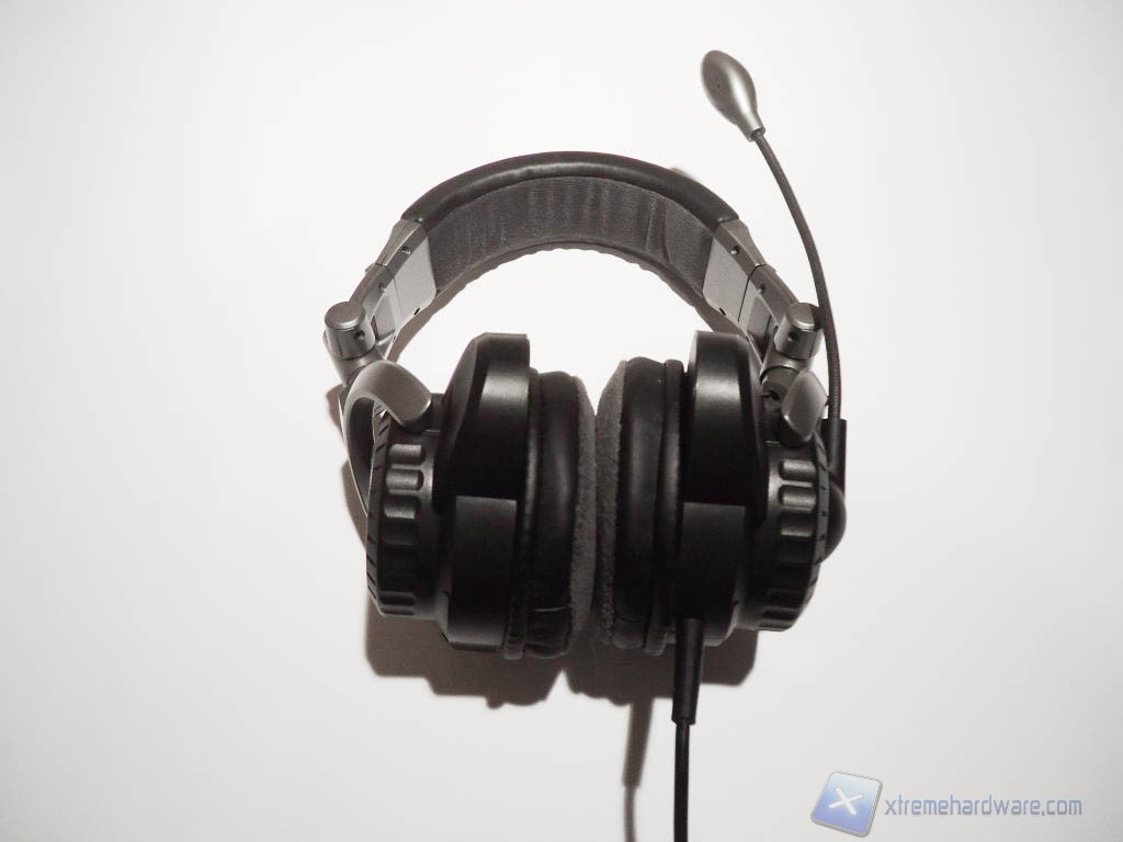 Le cuffie presentano padiglioni molto grandi e caratterizzati da una forma particolare, infatti non sono rotondi come la maggior parte degli headset ma presentano delle estensioni laterali dove sono contenute le casse aggiuntive per il surround. I padiglioni sono ben imbottiti e sono foderati con due materiali differenti , la parte a contatto con l’orecchio è rivestita con lo stesso tessuto che troviamo nell’archetto, mentre il restante è ricoperto in pelle.