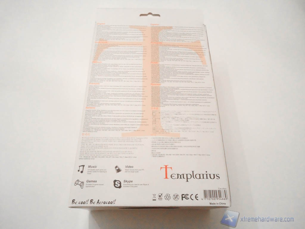 La scatola in cui sono contenute le Templarius Excelsus è di notevole dimensioni e di forma squadrata. Frontalmente troviamo il nome del prodotto accompagnato dalle caratteristiche principali come: il sistema 2.1 reale e il sistema Sensus. Affianco a queste specifiche è presente una finestra di grandi dimensioni che permette all’utente di osservare il prodotto prima dell’acquisto.