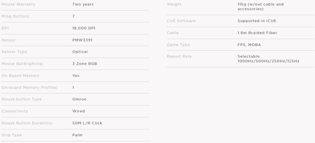 Procediamo ad elencare brevemente le caratteristiche del mouse Corsair Glaive RGB Pro: