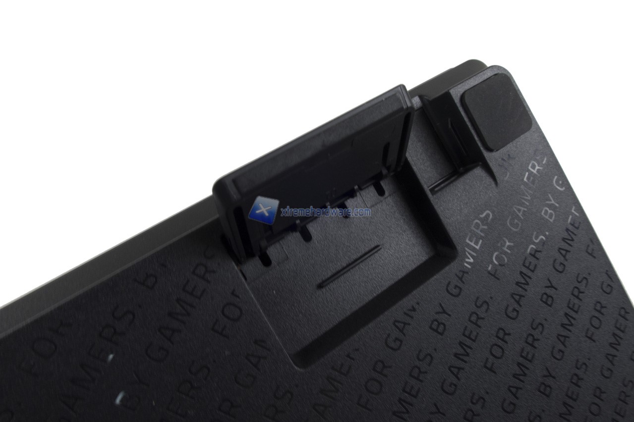 Non mancano però due piedini in plastica a doppia altezza che ci permetteranno di regolare la tastiera e naturalmente agevolare il comfort di digitazione e utilizzo. Nel secondo step i piedini hanno un ulteriore inserto in gomma per confermare e assicurare il masimo grip su ogni superficie d’appoggio.