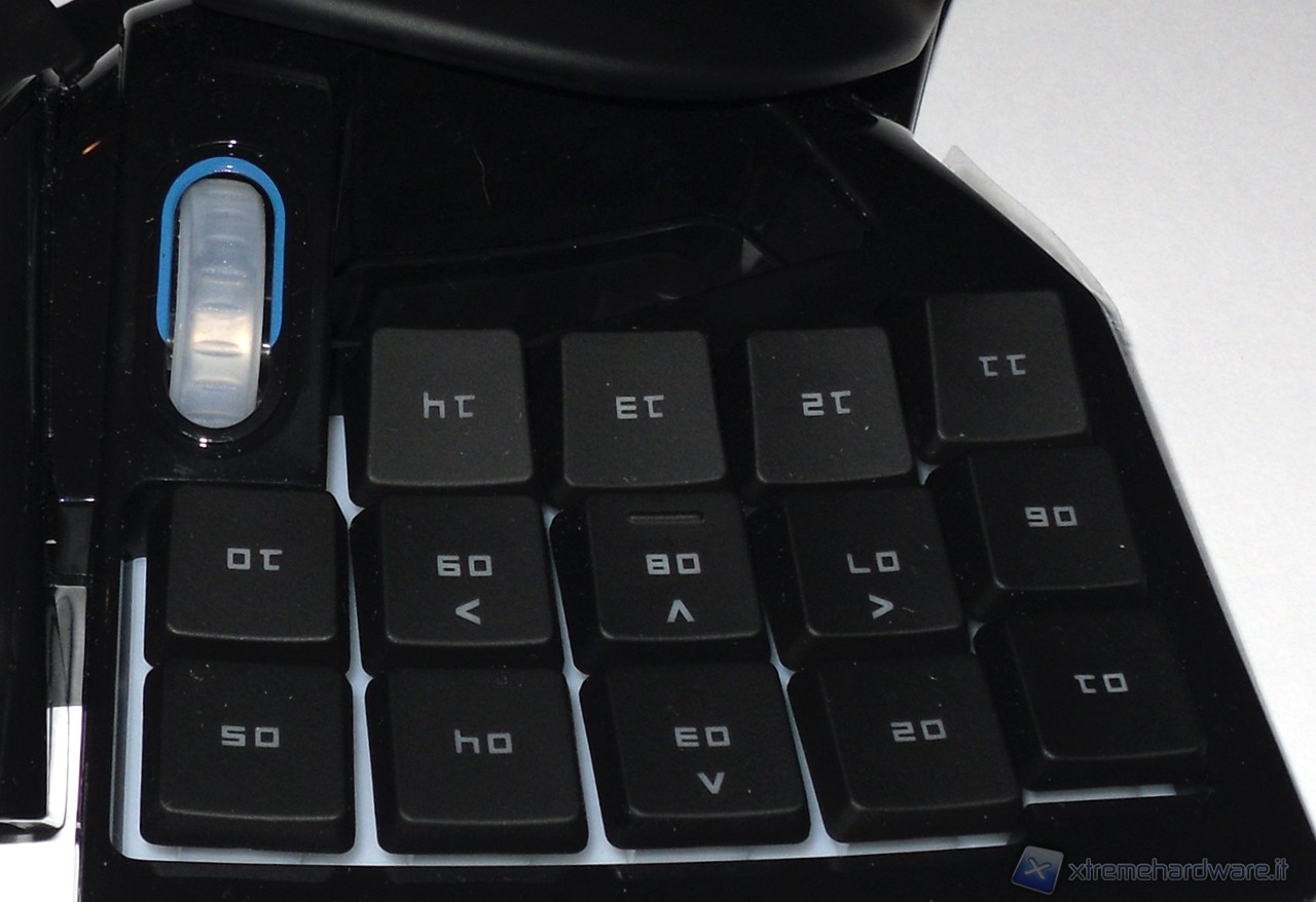 Sempre nella parte superiore è presente uno scroll configurabile simile a quello dei mouse, ma di dimensioni maggiori. Gli scatti molto distanziati danno un feedback atipico rispetto a quello che ci si può aspettare (frutto dell'esperienza quotidiana con i mouse), ma non negativo.