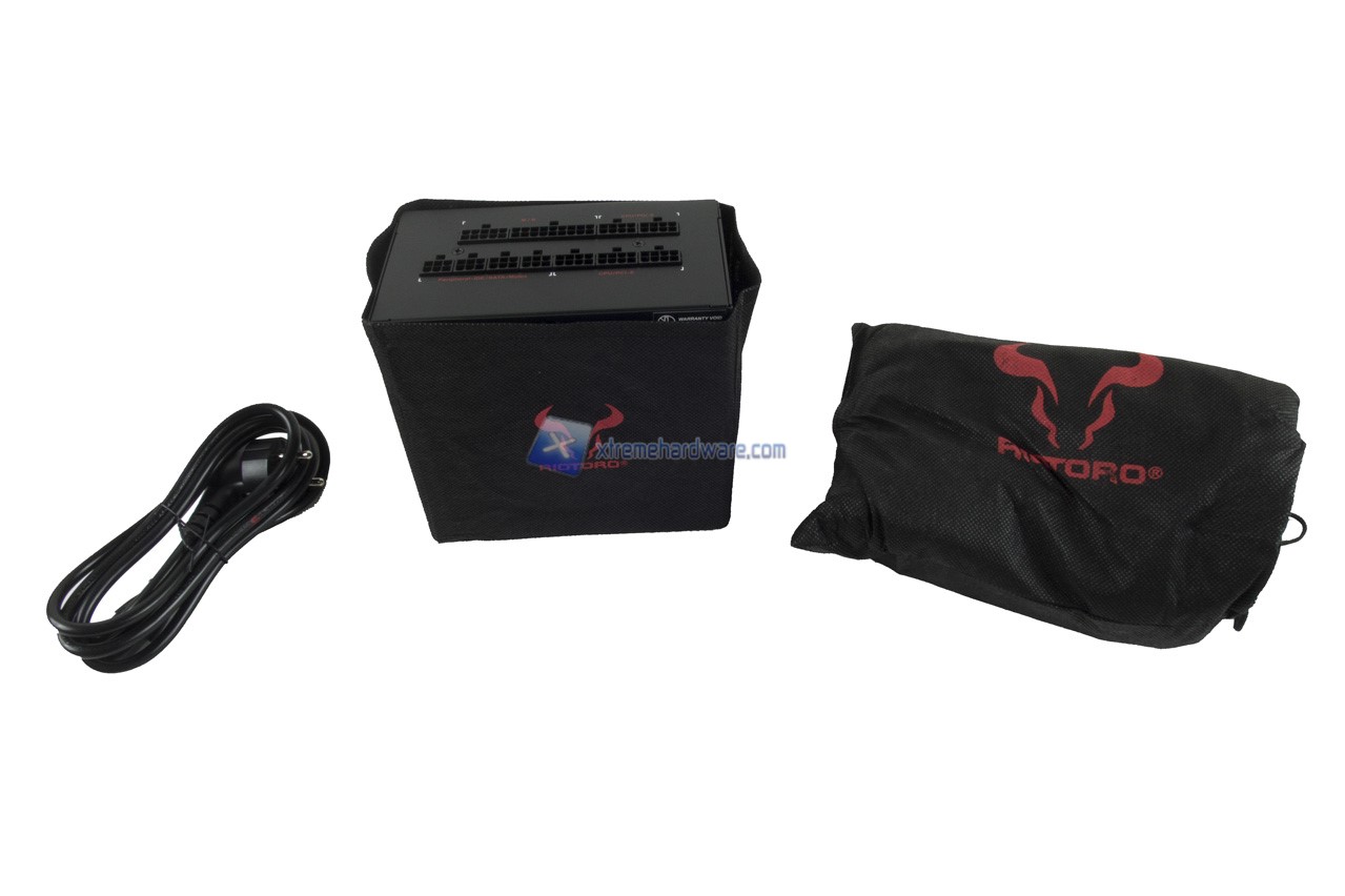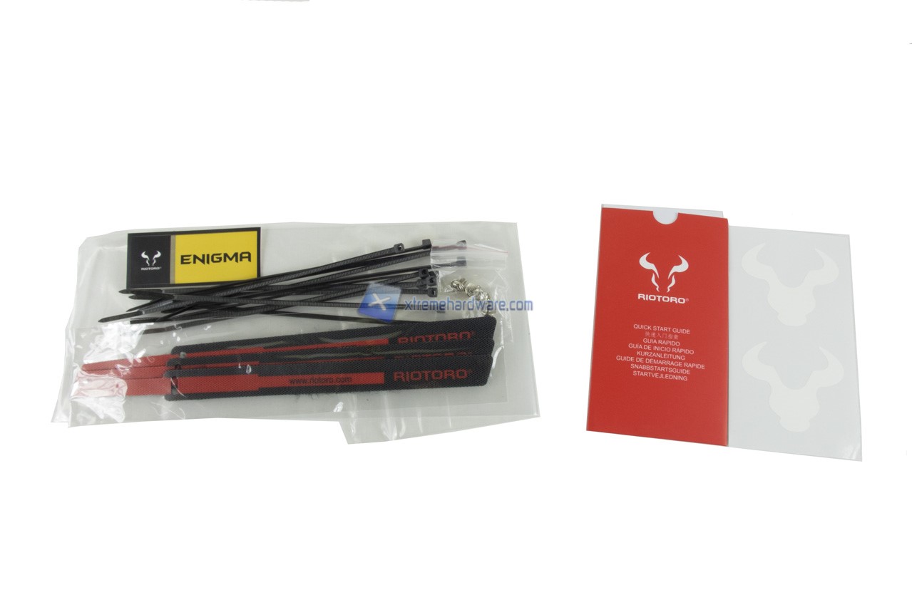 A seguire abbiamo il cavo di alimentazione con presa Schuko, PSU Riotoro Enigma e infine il set di cavi di alimentazione.