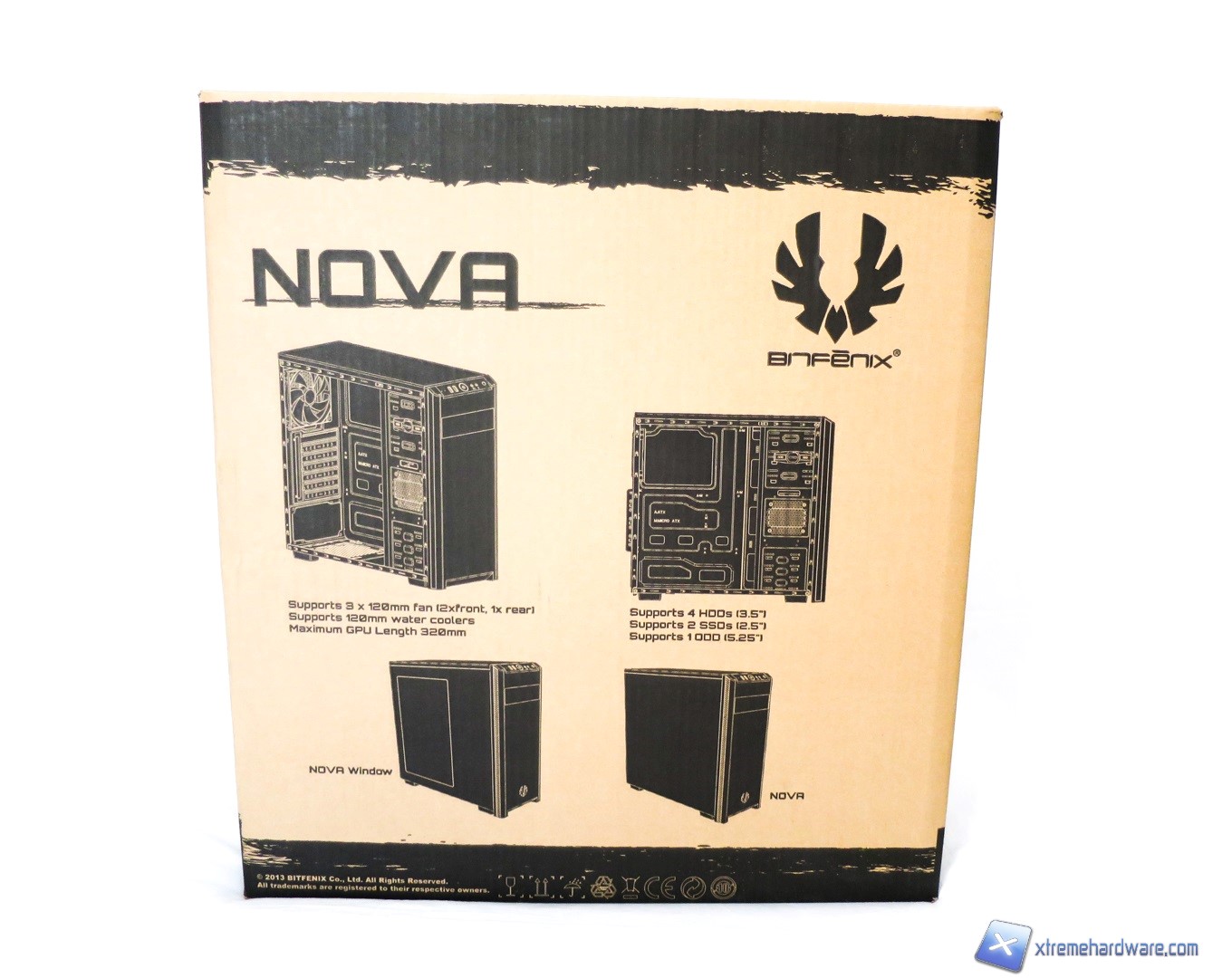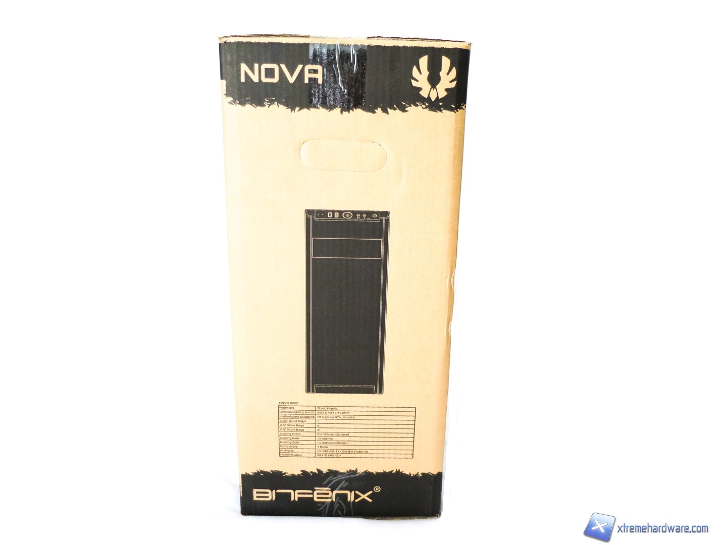 La confezione del BitFenix Nova è in cartone riciclato sulla quale sono riportate le diverse informazioni ed immagini illustrative del prodotto.