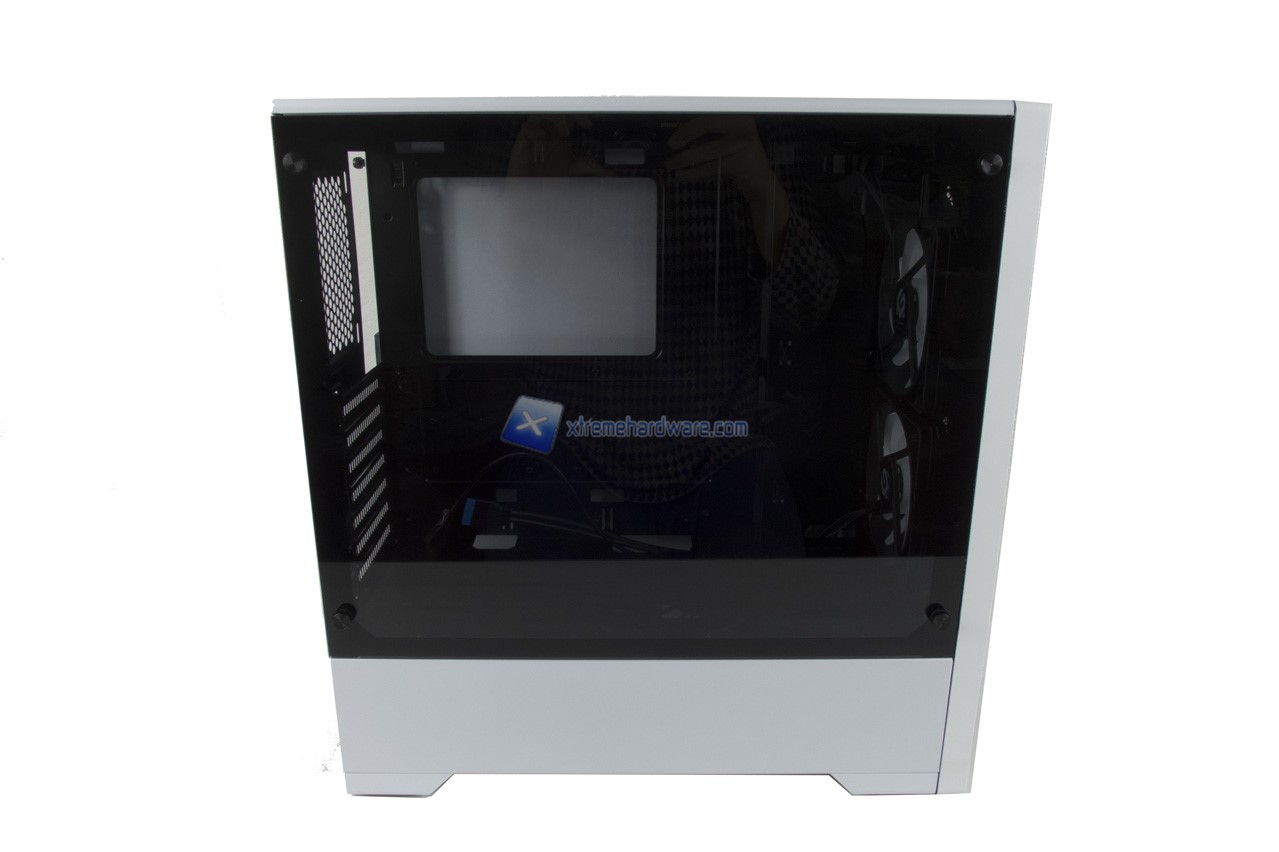 Per finire diamo uno sguardo ad entrambi i lati di cui il sinistro dotato del pannello in vetro temperato tenuto da quattro viti con relativi gommini antivibrazione e antigraffio.