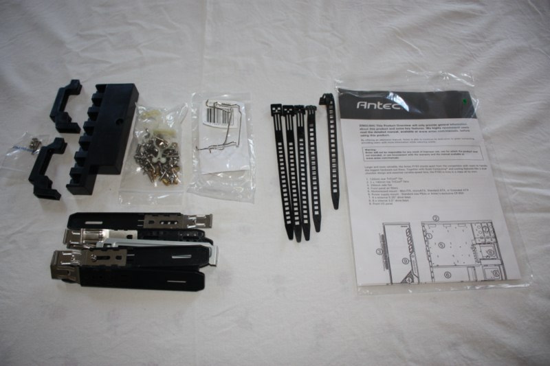 Le classiche viti, dei comodi ferma cavi in plastica, due clip per aggiungere una ventola in corrispondenza del vano degli hard disk, un aggancio supplementare per fermare la vga e tutto il necessario per montare gli hard disk e periferiche varie all'interno del case.
