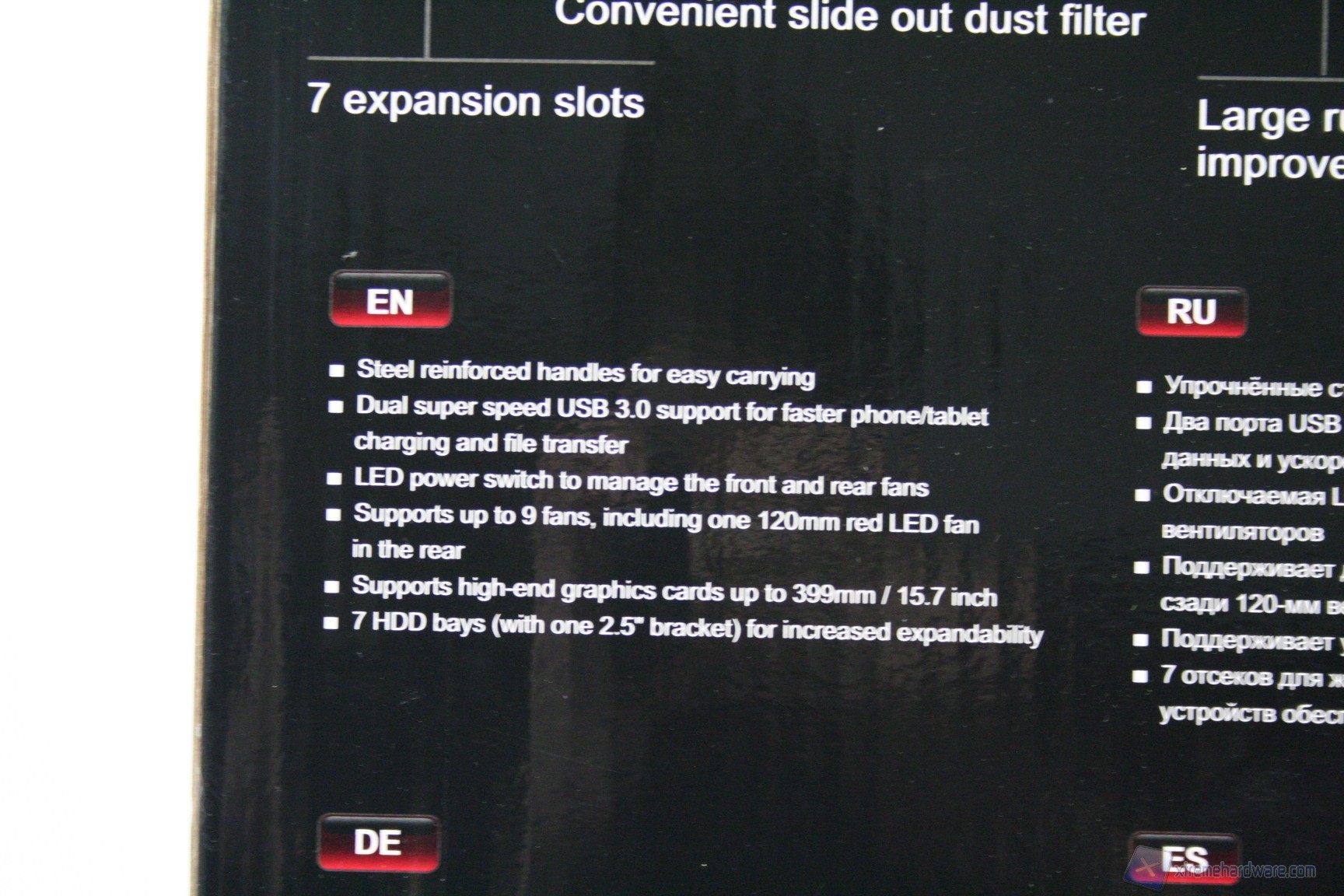 Il bundle in dotazione è particolarmente buono per un cabinet di questa fascia. Nel cabinet, purtroppo, è installata una sola ventola, che però è dotata di LED. Tale LED può essere spento tramite uno switch dedicato, in posizione frontale, che permette di gestire l’illuminazione di fino a due ventole.