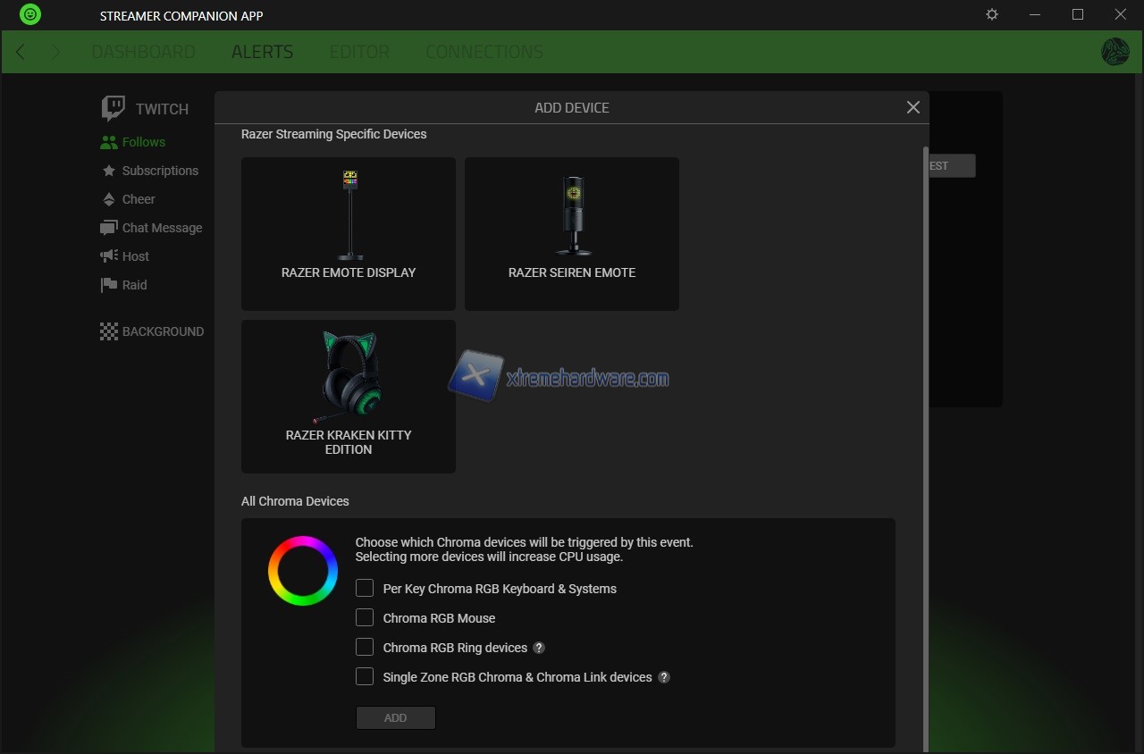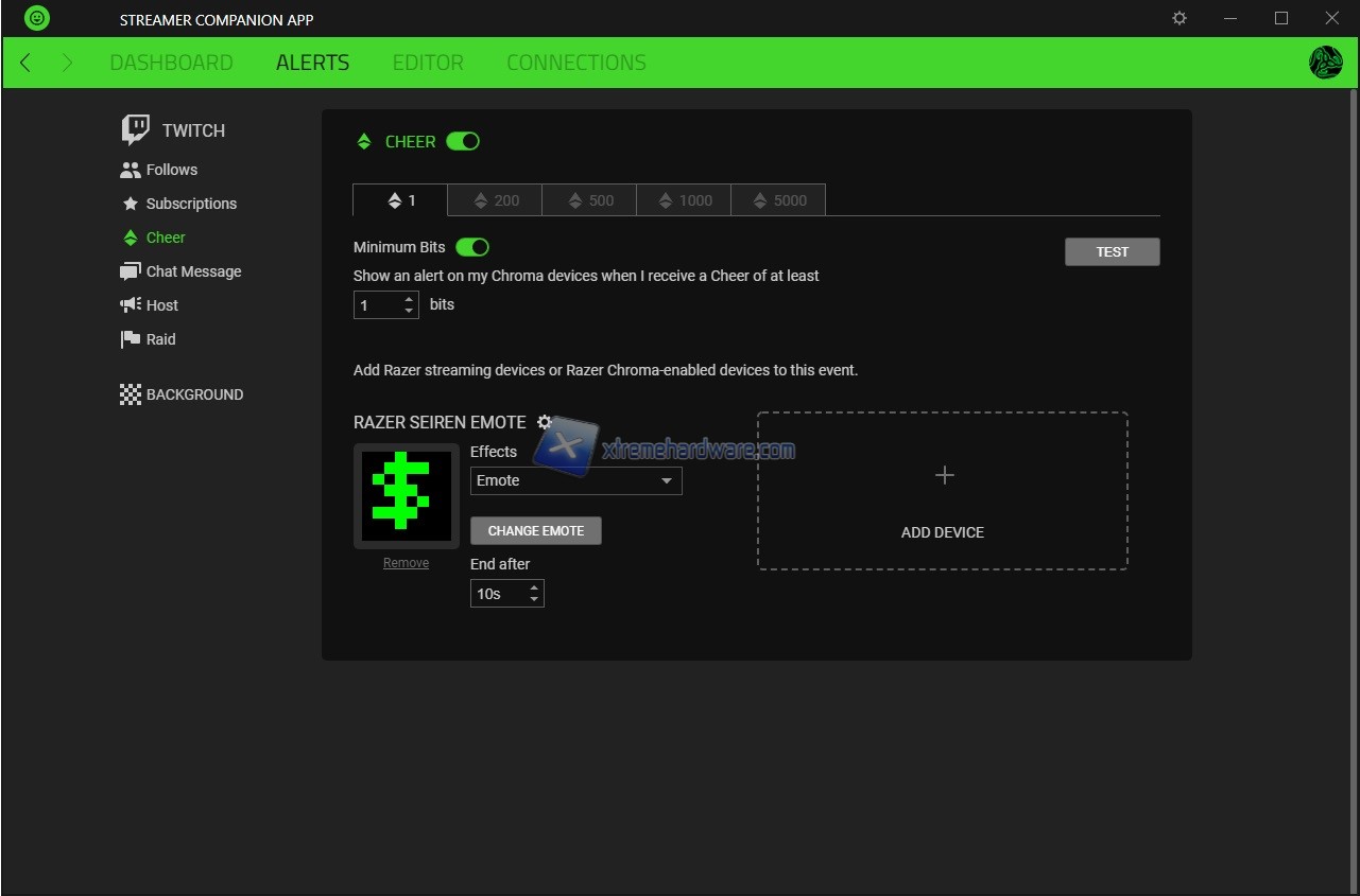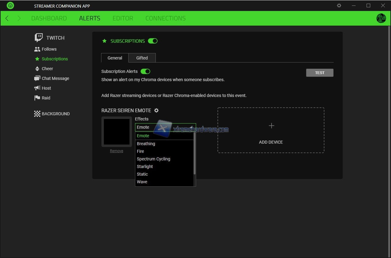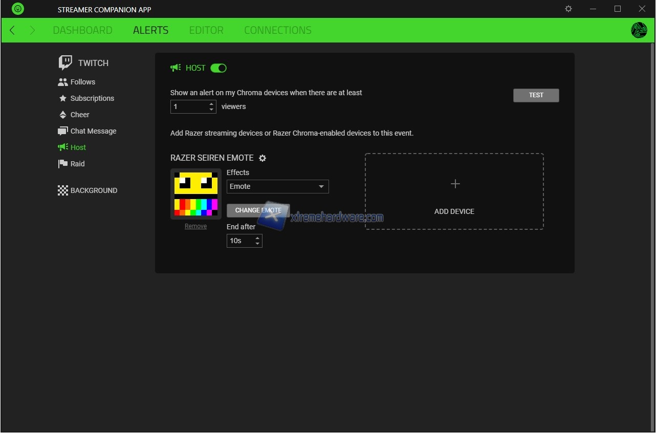 Passiamo dunque ad alcune considerazioni di utilizzo. Per poter utilizzare in toto il Seiren Emote dovremo in primis scaricare l’App Streamer Companion. A seguire dovremo linkare suddetta App al nostro profilo Twitch o Streamlabs nel caso siate degli streamer. Senza una delle due opzioni non potrete accedere alle impostazioni del software e dunque non potrete personalizzare nonché vedere alcuna emote sul display 8x8 del microfono. Dato per scontato che sarete riusciti ad accedere al software potrete dunque ignorare la parte degli Alerts nel caso non siate streamer e impostare semplicemente la voce ‘’Background’’ con cui impostare l’emote statica o animata da avere sul vostro Seiren Emote.