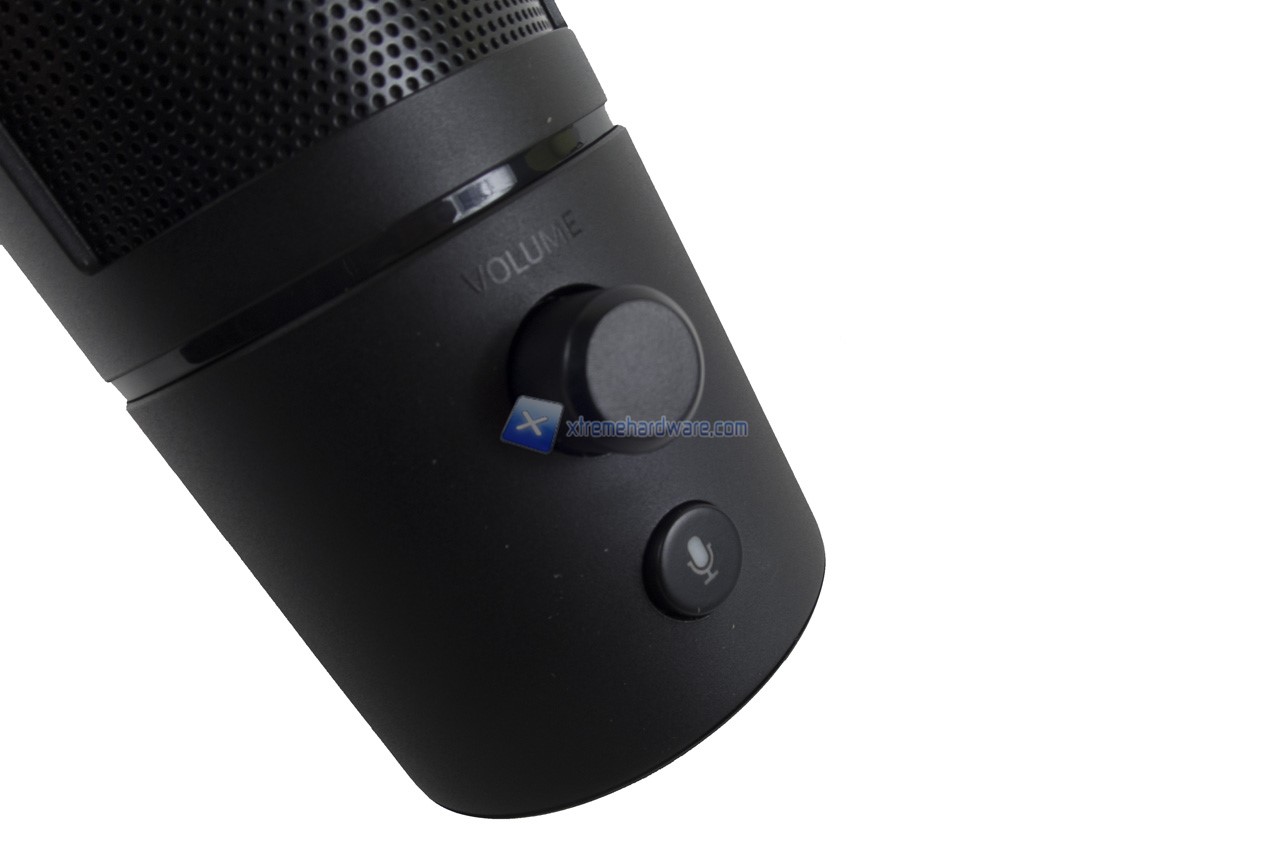 Nella parte frontale possiamo trovare al solito il tasto per l’attivazione/disattivazione (Verde Attivo – Rosso disattivato) del microfono oltre che la manopola per la regolazione del volume.