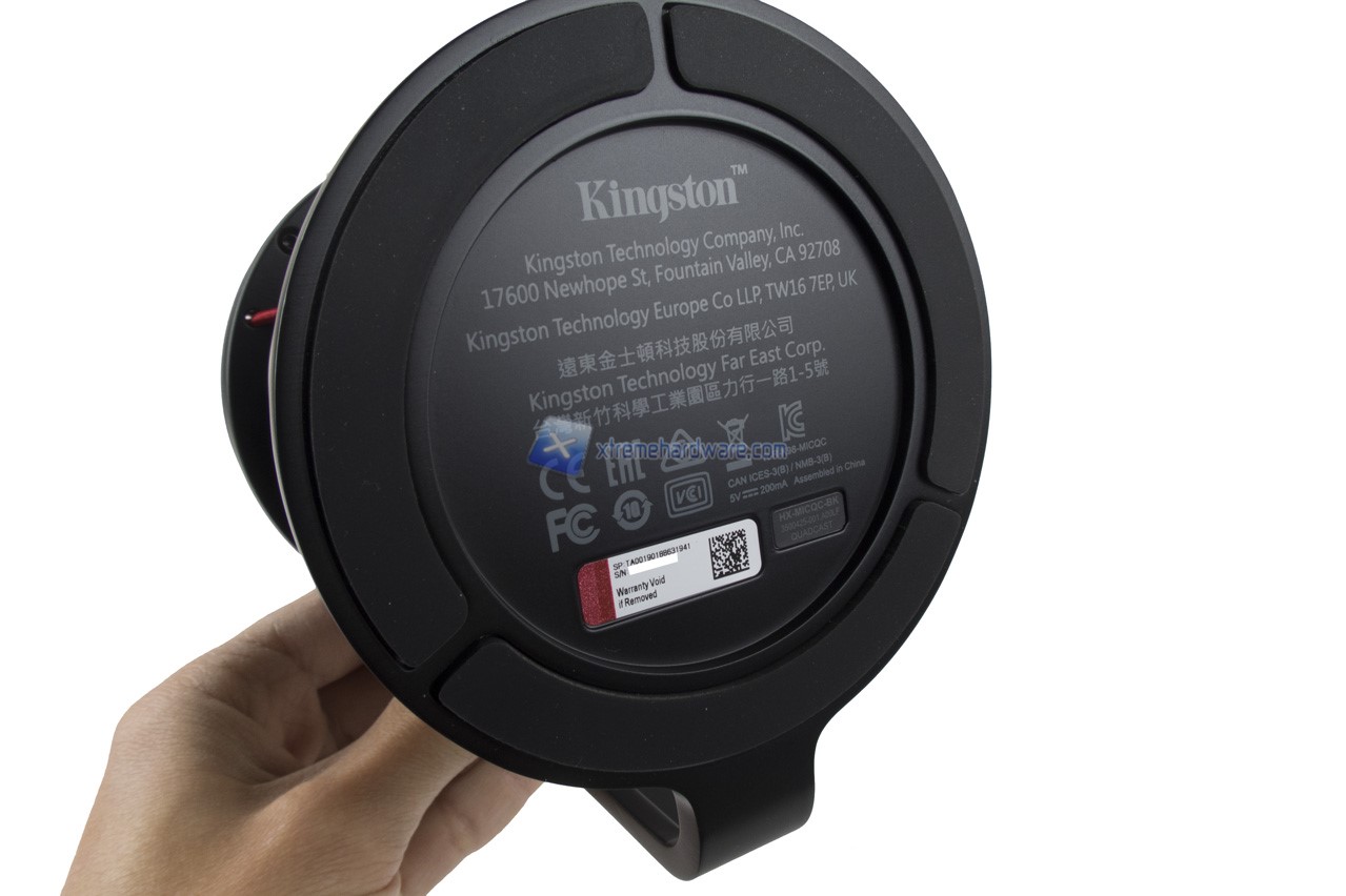 La base di contenute dimensioni ha nel suo lato inferiore anche un set di pad antiscivolo in gomma e troviamo anche un adesivo con diverse informazioni by Kingston.