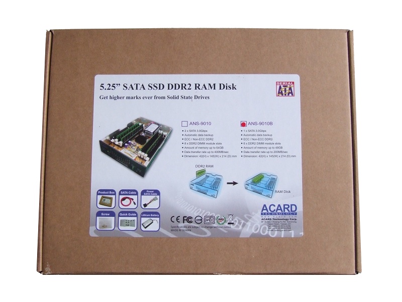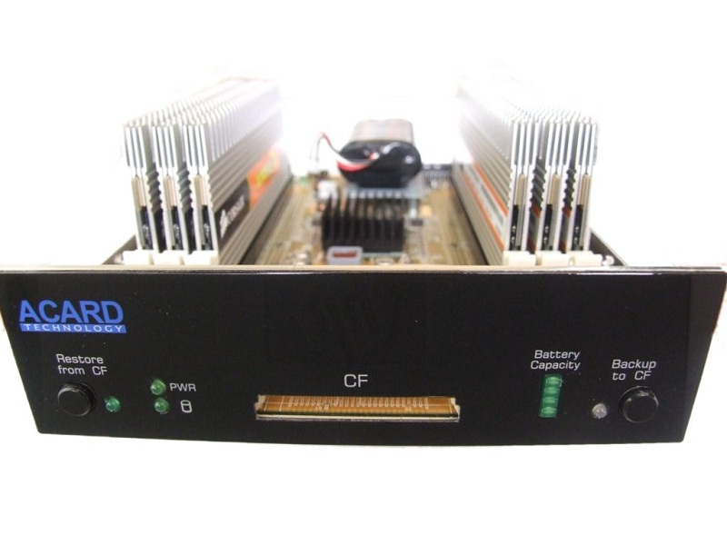 Oggi vi presentiamo un prodotto che si distingue per essere innovativo e, almeno per ora, unico nel suo genere. Stiamo parlando di un ramdisk della ACARD, in grado di offrire prestazioni mostruose come velocità di lettura/scrittura e come tempi di accesso, anche paragonato ai migliori dischi a stato solido.Questo prodotto si compone di una scheda logica alloggiata su un cassetto da 5,12 pollici da inserire all'interno del computer, di un alimentatore esterno e di uno slot per portare l'alimentazione esterna alla scheda. Su quest'ultima sono alloggiati gli slot per le ram DDR2 in cui verranno immagazzinate le informazioni, una batteria tampone ed un lettore per schede Compactflash, necessarie per il backup.