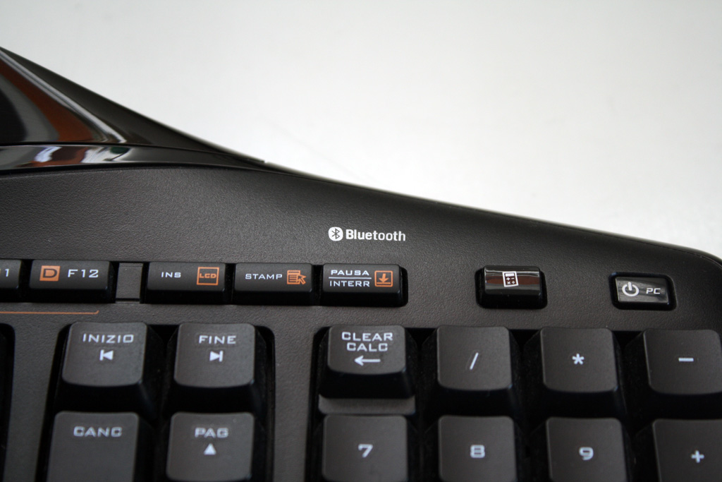 Sopra il tastierino numerico c‘è un tasto per la calcolatrice, che una volta premuto non aprirà come potremmo pensare la calcolatrice preinstallata nel sistema operativo, ma farà andare il piccolo monitor LCD in funzione calcolatrice e potremo eseguire i classici calcoli direttamente nella tastiera. Accanto al tasto calcolatrice troviamo il pulsante per mandare il PC in sospensione / ibernazione.