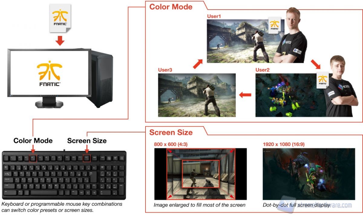 EIZO fornisce, a corredo del bundle, un software chiamato ScreenManager Pro for Gaming dal quale sarà possibile agire sui setting presenti nel menù OSD tramite mouse. Dopo aver installato il programma, sarà necessario collegare anche il cavo USB al PC per far riconoscere il FORIS FG2421 e abilitare tutte le funzioni. Da qui sarà possibile creare dei profili personalizzati e caricarne di altri fatti appositamente per il gioco di interesse e forniti da altri videogiocatori o scaricabili dal sito gaming.eizo.com/downloads che sono offerti dal team Fnatic, professionisti nel mondo gaming. Nella schermata iniziale si possono scegliere dei tasti rapidi per poter variare la modalità colore, la dimensione della schermata e l’abilitazione o meno dell’audio.