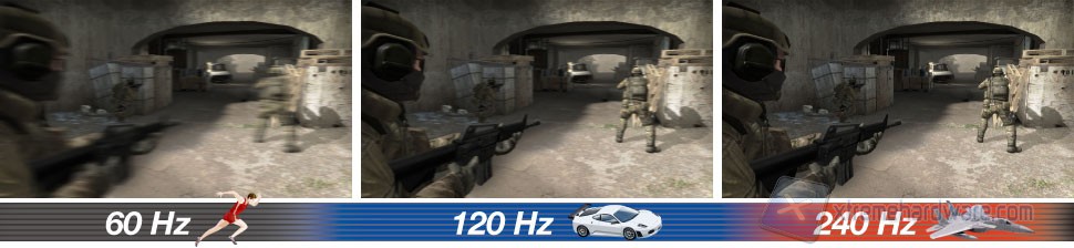 La prima impressione che dà questa nuova tecnologia Turbo 240 si ricollega ai mirabolanti Hertz che vengono tanto pubblicizzati nel mondo TV. In quest’ultimo campo, attraverso un’elaborazione interna affidata all’elettronica, il televisore, riassumendo il comportamento in modo semplicistico e generale, è in grado di eseguire un’interpolazione tra i fotogrammi che pervengono dalla fonte del segnale. Questo vuol dire che tra un fotogramma e l’altro ne viene creato uno “fittizio” (o più). Un approccio di questo genere causerebbe un ritardo di risposta eccessivo per l’uso gaming, con lag decisamente non in linea con i requisiti ricercati dai più esigenti videogiocatori.