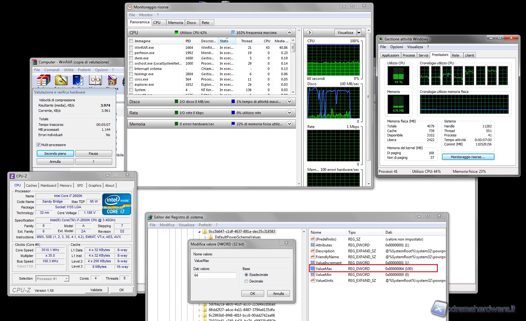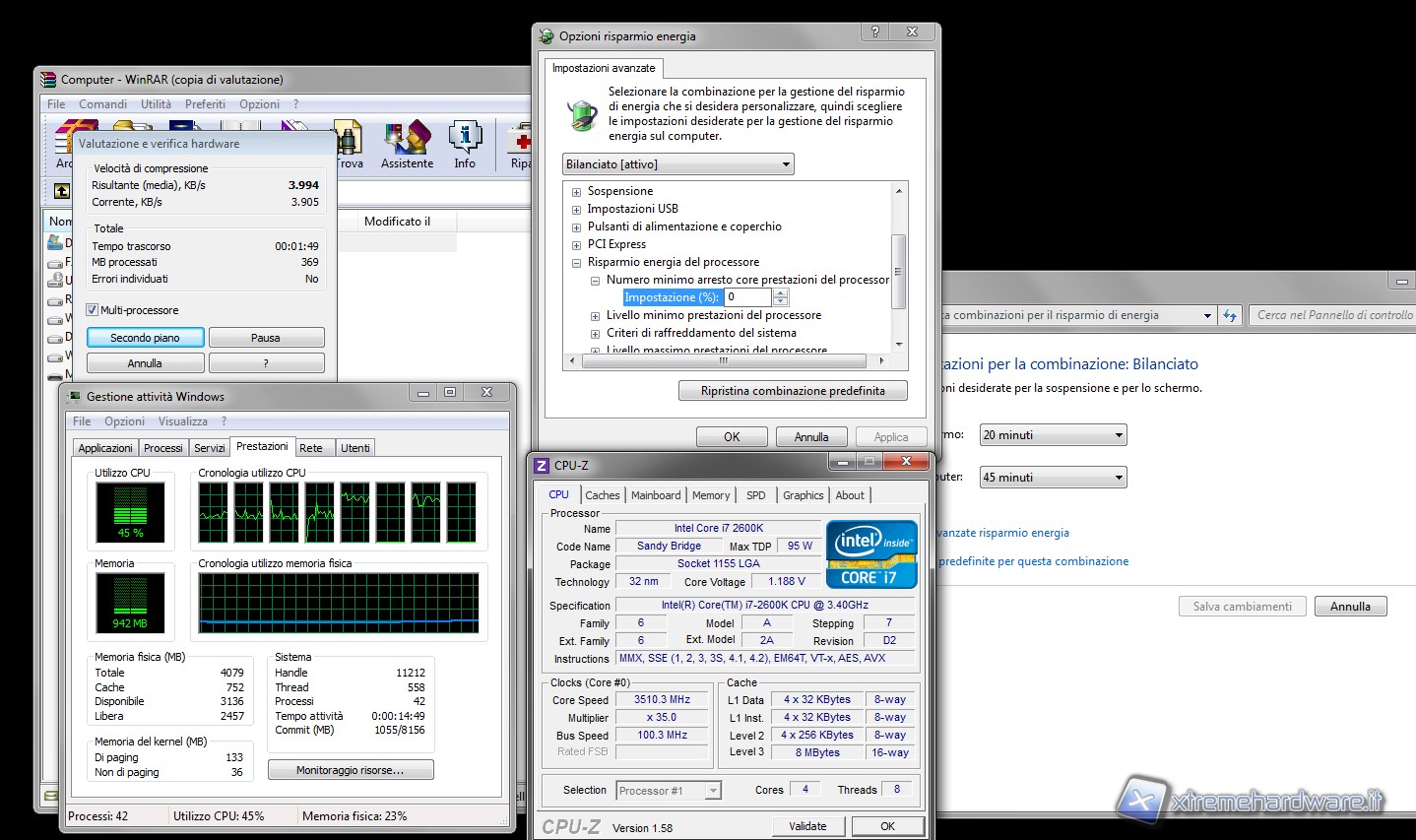 Core parking in Windows Seven: prestazioni di WinRaR con Sandy Bridge