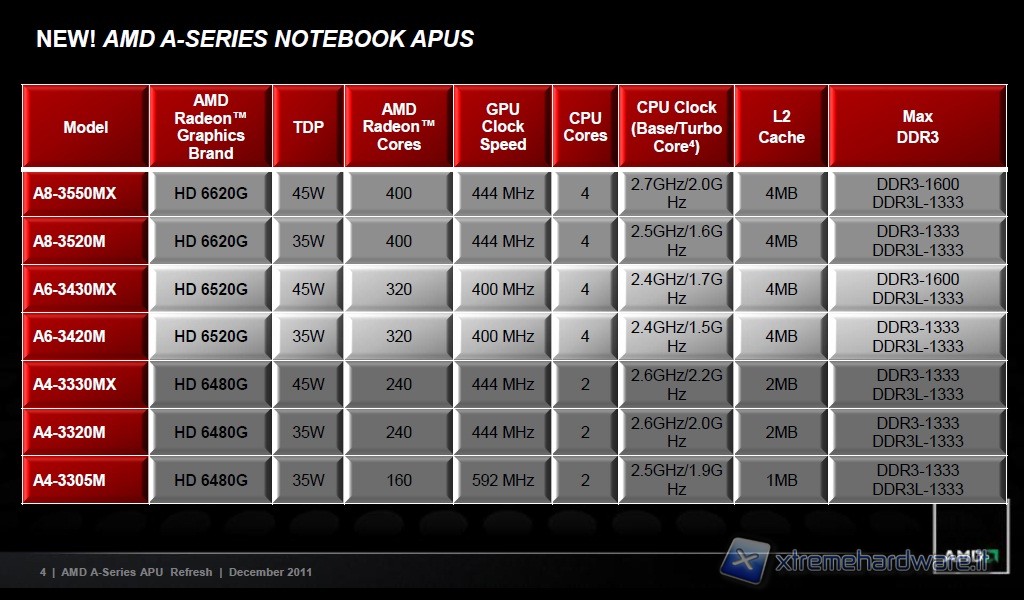 Nei giorni scorsi AMD ha presentato una nuova serie di APU dedicate sia al mercato notebook e sia al mercato desktop; potete vedere nelle tabelle sottostanti i vari modelli che hanno visto il debutto: