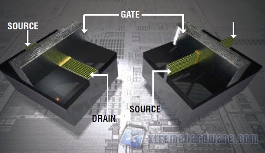 La conseguente riduzione della corrente erogata al Gate, dettata dall’esigenza di mantenere parchi i consumi, non consentiva di completare in tempi “accettabili” lo spostamento degli elettroni dal Source al Drain. Ricordiamoci che si parla di frequenze dell’ordine di miliardi di Hertz. Ecco che Intel, forte dell’esperienza e di un reparto di ricerca dedicato allo studio costante di soluzioni innovative, è riuscita a superare il problema con una soluzione geniale ed al tempo stesso migliorativa dal punto di vista tecnico. In termini di cifre, che rendono l’idea dei vantaggi introdotti con il transistor 3D, parliamo di una velocità di commutazione, “a parità di voltaggio”, che va dai 18 al 37 %. Se poi includiamo un altro fattore “non trascurabile” che riguarda il minor voltaggio nell’ordine di 0,2 volt richiesto dal nuovo tipo di transistor per effettuare la commutazione, lo scenario che si apre da quest’architettura è notevole. Ecco che la dichiarazione di Intel di riuscire a produrre transistor più veloci del 37 % rispetto agli attuali ad un consumo inferiore ci sembra essere quanto mai veritiera.
