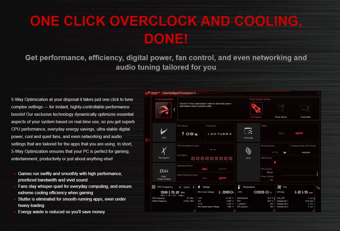 Una suite in grado di effettuare in Real-Time modifiche alle frequenze e voltaggi della vostra CPU e RAM. Con questa applicazione potrete anche effettuare un Tuning automatico delle prestazioni della vostra CPU e controllare ogni singolo parametro. Avrete modo di gestire anche direttamente da ambiente Windows la velocità delle ventole, dei risparmi energetici e molto altro ancora.