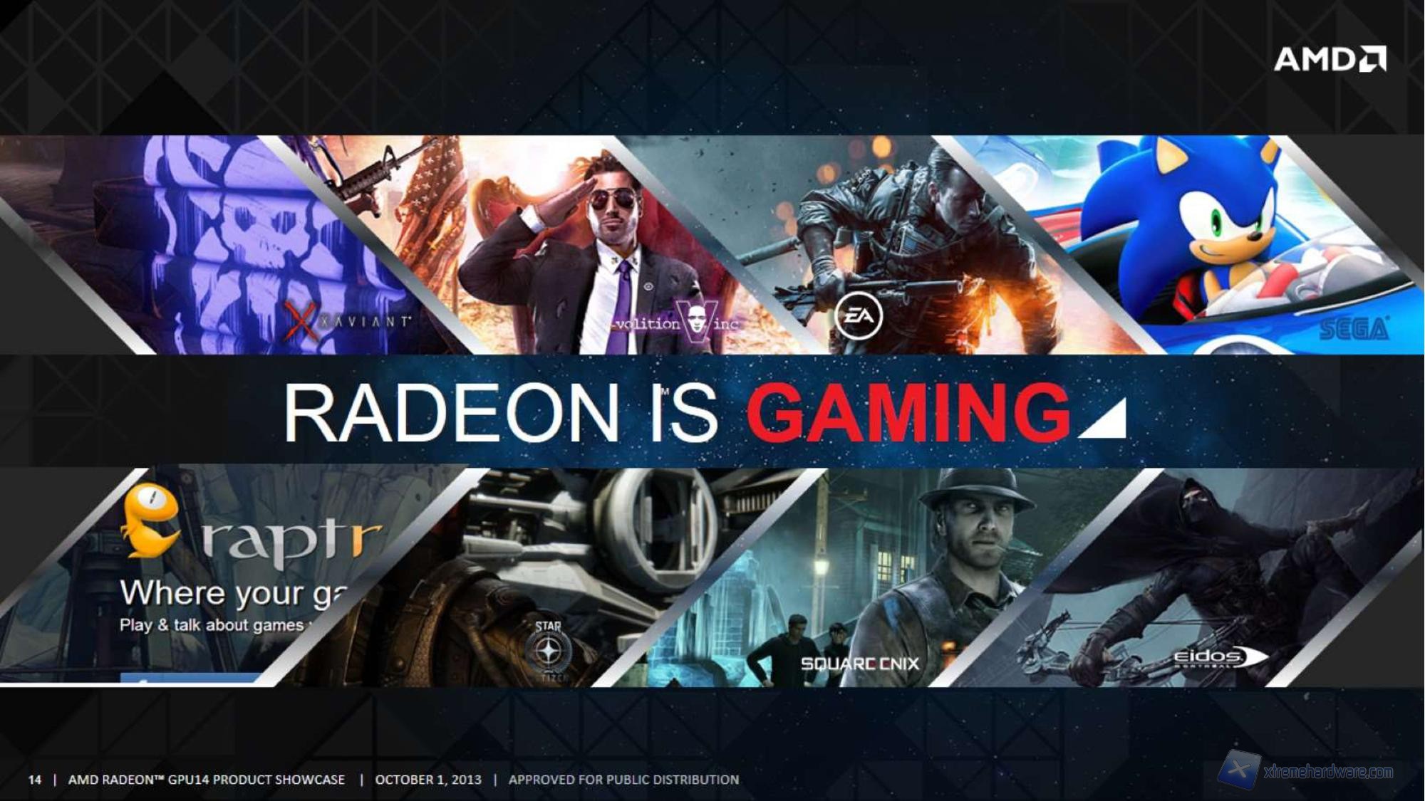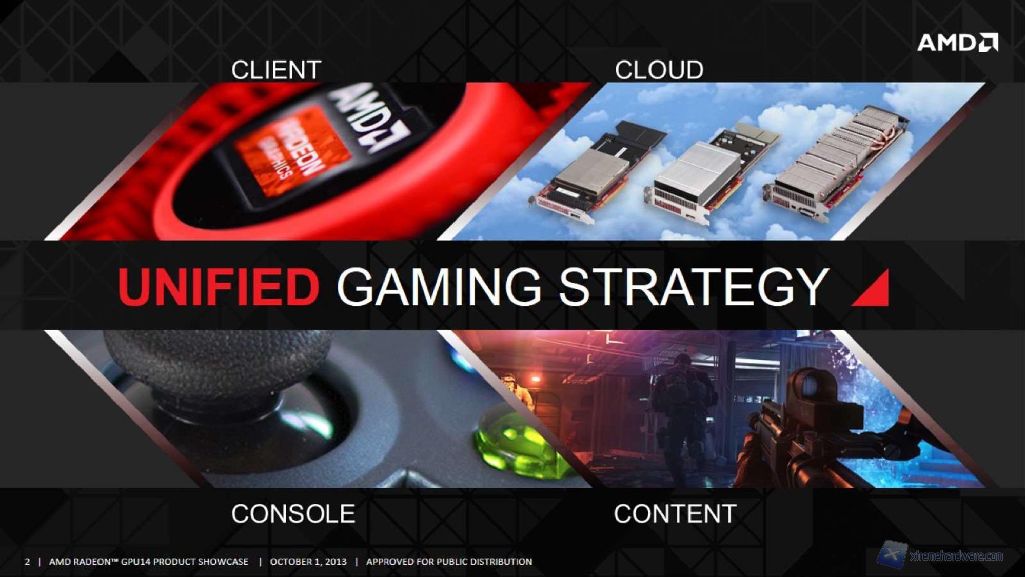Il 25 Settembre 2013 AMD ha svelato con un annucio al GPU '14 Tech Day le future soluzioni che sono attese per le prossime settimane ed anche altre diverse novità molto interessanti. Le notività principali sono rappresentate da una nuova serie di schede grafiche con nome in codice Hawaii, che va a identificare tutta una nuova serie di schede video basata sulla nuova architettura Graphics Core Next 2.0. Dalle slide che AMD ha mostrato sono emerse in particolare due serie di VGA: la prima R7 e la seconda R9.
