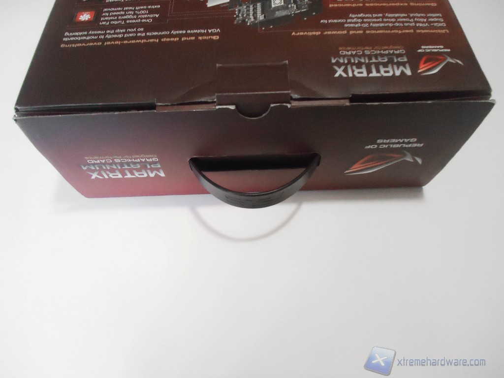 Superiormente troviamo una comoda maniglia per il trasporto della confezione e quindi della scheda.