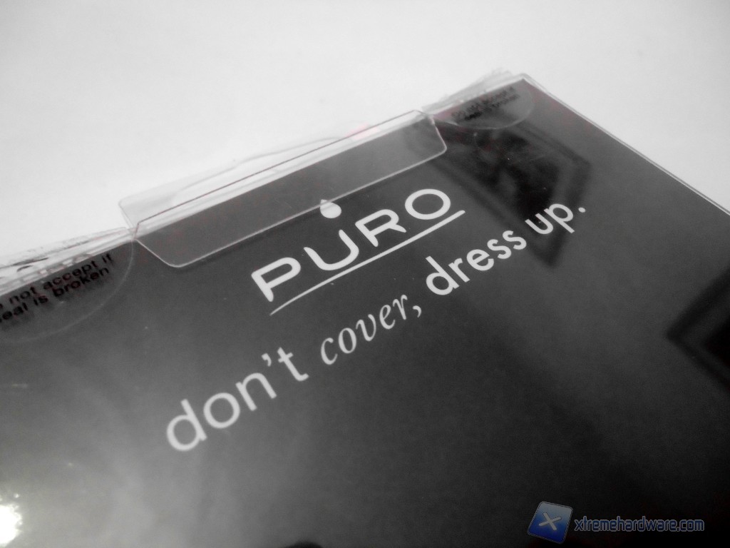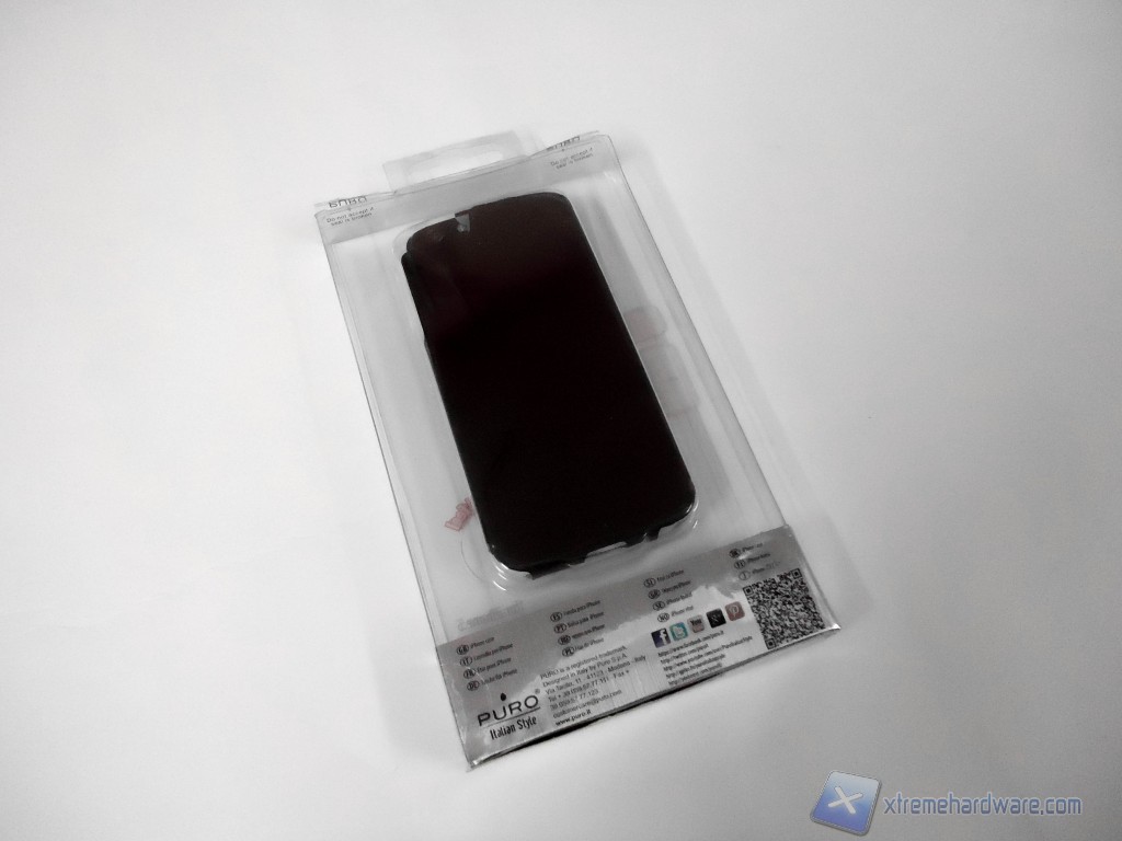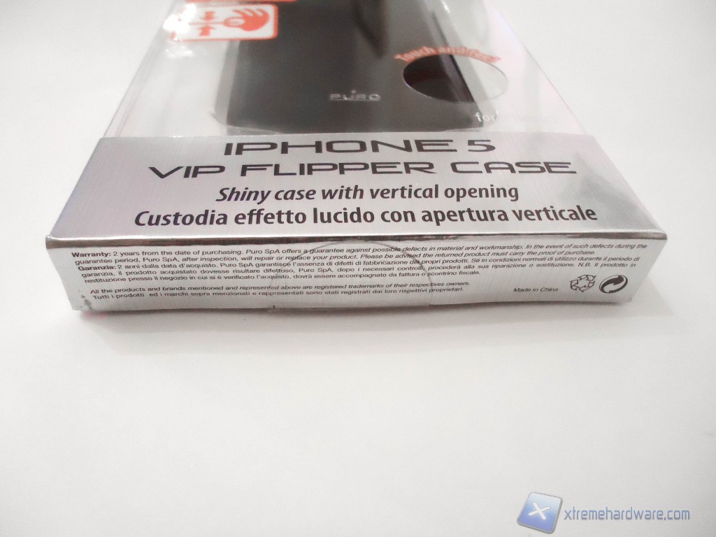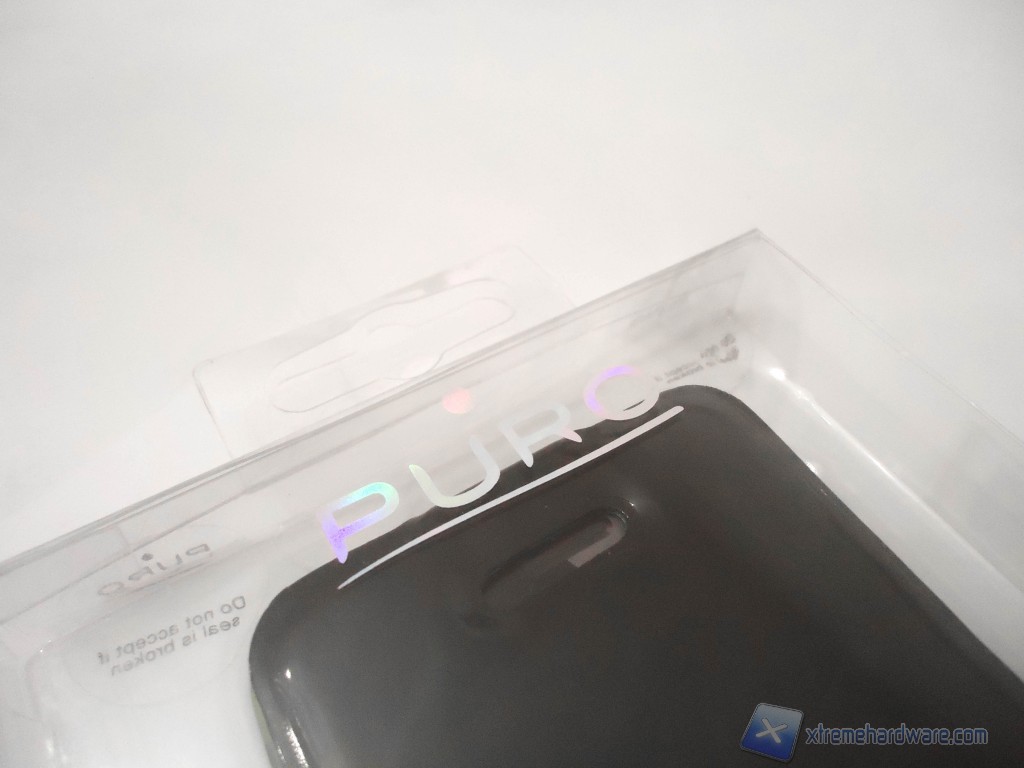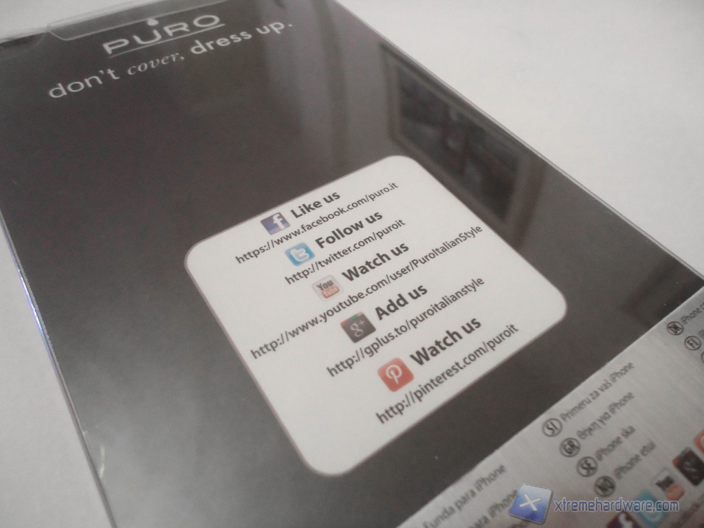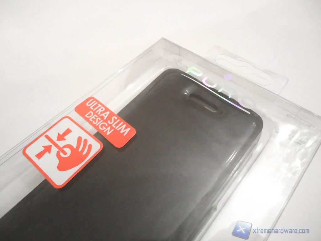 Girando le due scatole notiamo una prima differenza tra le due. Posteriormente la custodia della cover Glitter presenta un cartoncino nero dove sono riportate il logo dell’azienda e il relativo motto ed inoltre alcuni indirizzi web utili per essere sempre aggiornati sui prodotti PURO. L’altra custodia invece non presenta questo cartoncino e permette di vedere il posteriore della Flipper Case. Sul cartoncino argentato presente in basso troviamo le informazioni relative all’azienda.