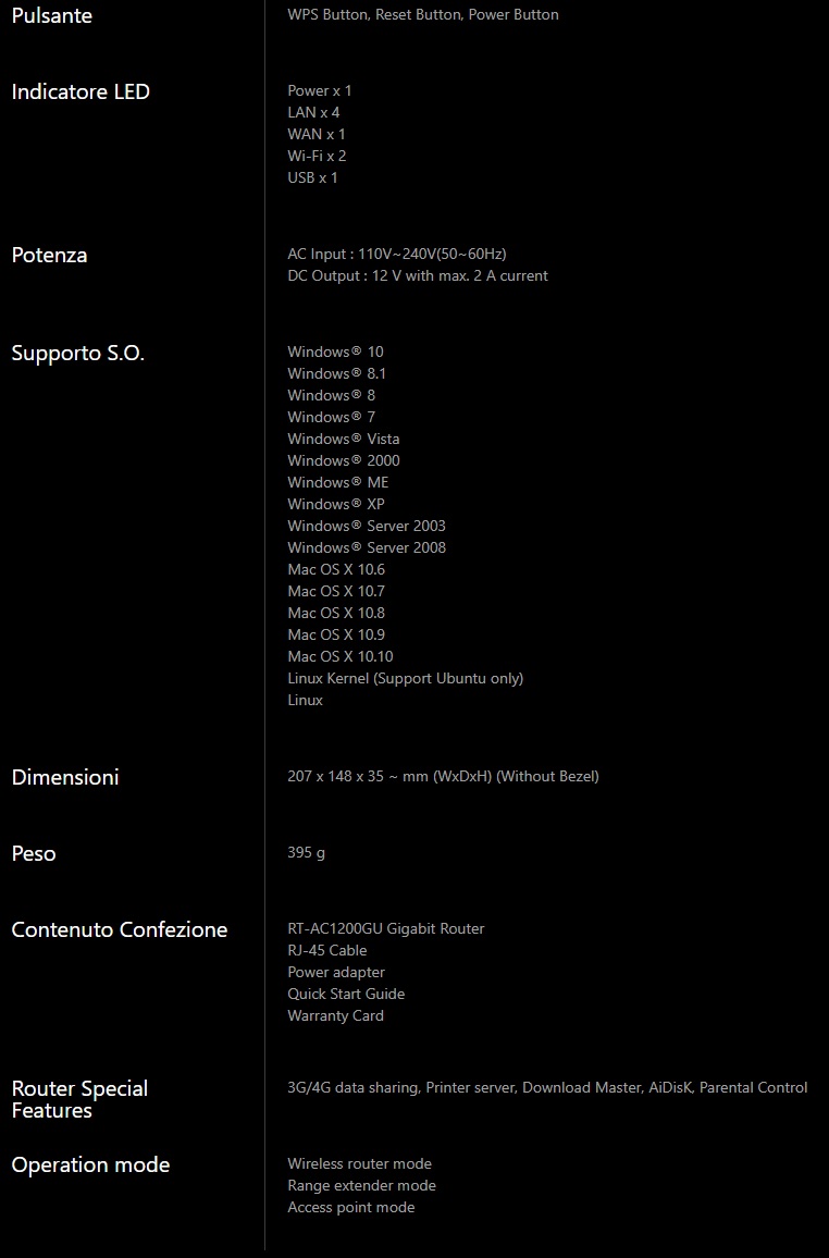 ASUS RT-AC57U - Il router dalle mille impostazioni - Specifiche Tecniche