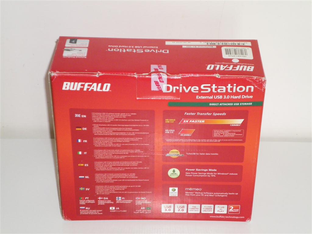 Il primo prodotto che andremo ad esaminare è l'HD-HXU3 che fa parte delle categoria Buffalo DriveStation™ USB 3.0, proposto in diversi tagli capacitativi. Le capacità che possiamo trovare per questo modello sono 1TB, 1.5 TB ed infine ben 2 TB. Il modello che andremo a testare in questa recensione è la proposta base, con capacità di archiviazione pari a 1TB, identificato con la sigla HD-HX1.0TU3-EU. Possiamo vedere di seguito le immagini esplicative di questo prodotto a partire dalla sua confezione: