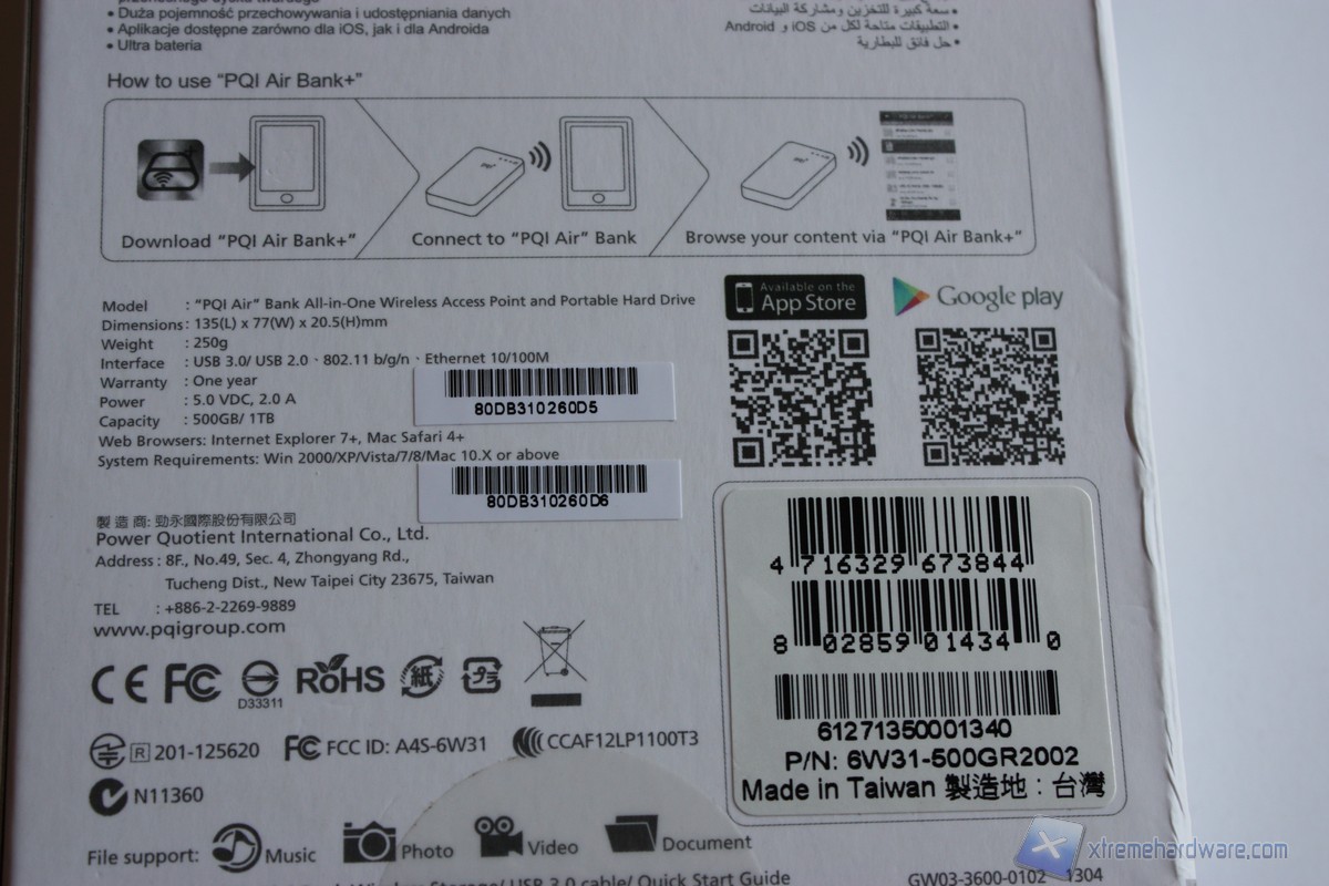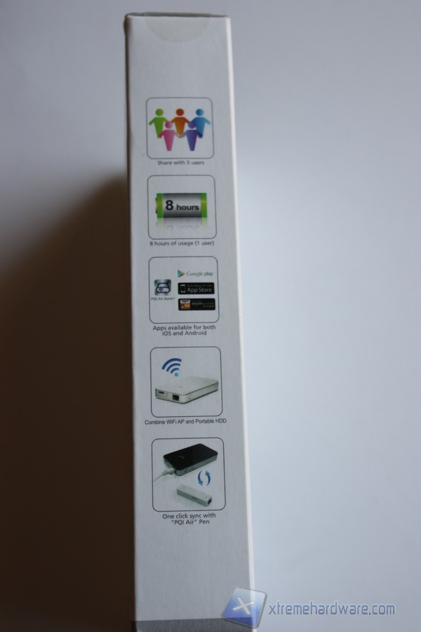 La confezione del PQI Air Bank è realizzata in cartone abbastanza resistente e di colore bianco. La parte frontale presenta numerose informazioni quali il logo dell’azienda, la capacità di archiviazione, un riconoscimento al prodotto, i dispositivi compatibili e le caratteristiche maggiori del prodotto oltre che alcune immagini stilizzate del prodotto e del suo utilizzo.