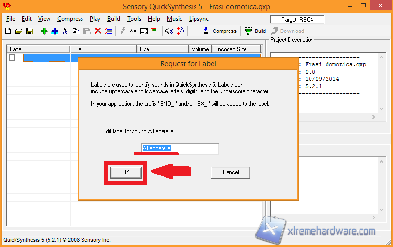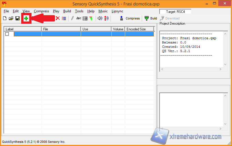 Bene, adesso non ci resta che comprimere tutto con QuickSynthesis5 e rendere tutti i file audio compatibili con la scheda EasyVR. Apriamo il programma con le priorità di amministratore (se non sapete come fare vedete il video o l’articolo precedente) e creiamo un nuovo file.