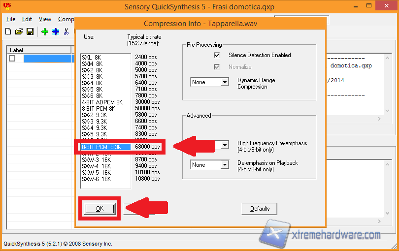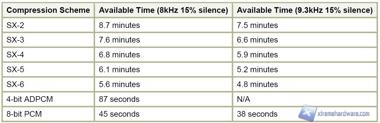 Come vedete in base alla durata della registrazione possiamo scegliere che tipo di compressione applicare, ma comunque non siate troppo fiscali i metodi di compressioni sono tutti funzionanti su qualsiasi traccia audio di qualsiasi durata, ma è meglio scegliere il metodo di compressione più adatto per una compressione più efficiente. Io sceglierò la 8-bit PCM 9.3kHz che ci assicura una buona qualità.